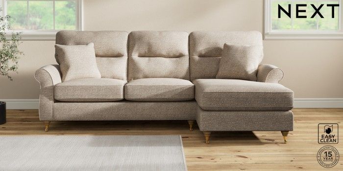 7.2.10 Ashford Highback Medium Sofa Chaise - Right Hand Chunky Boucle Easy Clean Mid Natural Castor - Light | Made Click here to use our website with more accessibility support, for example screen readers