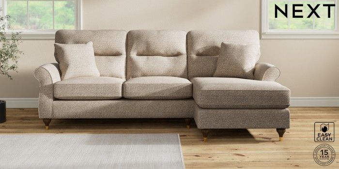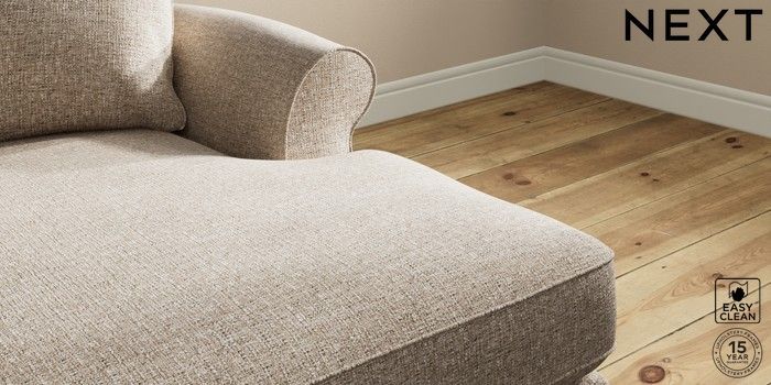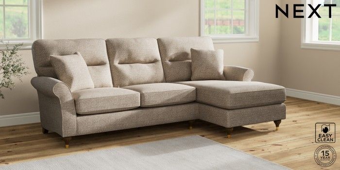 7.2.10 Ashford Highback Medium Sofa Chaise - Right Hand Chunky Boucle Easy Clean Mid Natural Modern Turned Metal Cap - Mid | Made Click here to use our website with more accessibility support, for example screen readers