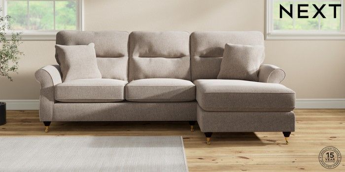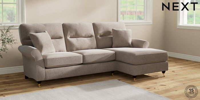 7.2.10 Ashford Highback Medium Sofa Chaise - Right Hand Chunky Chenille Light Dove Castor - Dark | Made Click here to use our website with more accessibility support, for example screen readers