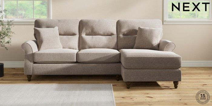7.2.10 Ashford Highback Medium Sofa Chaise - Right Hand Chunky Chenille Light Dove Low Turned - Mid | Made Click here to use our website with more accessibility support, for example screen readers