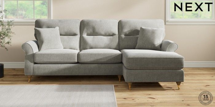 7.2.10 Ashford Highback Medium Sofa Chaise - Right Hand Chunky Chenille Light Grey Castor - Light | Made Click here to use our website with more accessibility support, for example screen readers