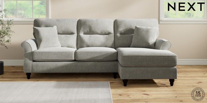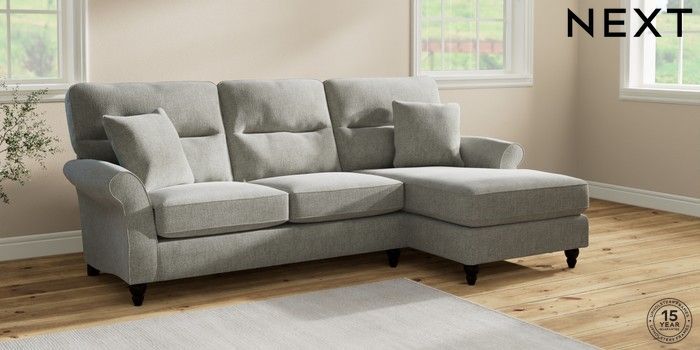 7.2.10 Ashford Highback Medium Sofa Chaise - Right Hand Chunky Chenille Light Grey Low Turned - Dark | Made Click here to use our website with more accessibility support, for example screen readers