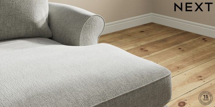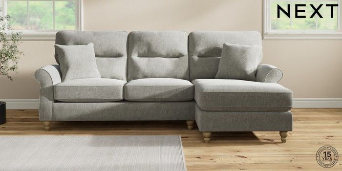 7.2.10 Ashford Highback Medium Sofa Chaise - Right Hand Chunky Chenille Light Grey Low Turned - Light | Made Click here to use our website with more accessibility support, for example screen readers