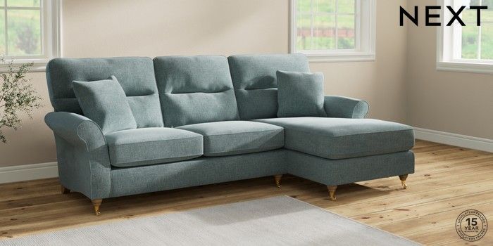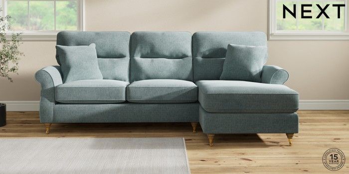 7.2.10 Ashford Highback Medium Sofa Chaise - Right Hand Chunky Chenille Light Teal Green Castor - Light | Made Click here to use our website with more accessibility support, for example screen readers
