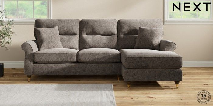 7.2.10 Ashford Highback Medium Sofa Chaise - Right Hand Chunky Chenille Mink Brown Castor - Mid | Made Click here to use our website with more accessibility support, for example screen readers