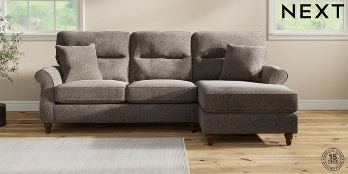 7.2.10 Ashford Highback Medium Sofa Chaise - Right Hand Chunky Chenille Mink Brown Low Turned - Mid | Made Click here to use our website with more accessibility support, for example screen readers