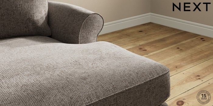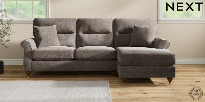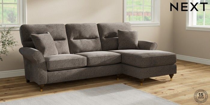 7.2.10 Ashford Highback Medium Sofa Chaise - Right Hand Chunky Chenille Mink Brown Modern Turned Metal Cap - Mid | Made Click here to use our website with more accessibility support, for example screen readers