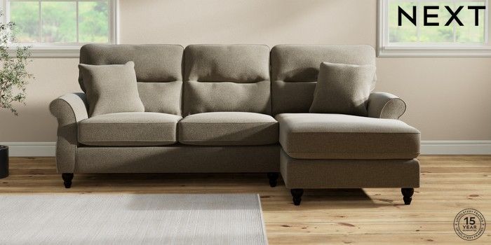 7.2.10 Ashford Highback Medium Sofa Chaise - Right Hand Chunky Marl Light Olive Green Low Turned - Dark | Made Click here to use our website with more accessibility support, for example screen readers