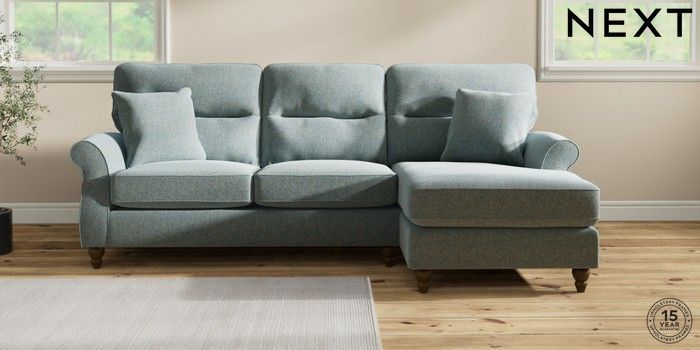 7.2.10 Ashford Highback Medium Sofa Chaise - Right Hand Chunky Marl Mid Blue Low Turned - Mid | Made Click here to use our website with more accessibility support, for example screen readers