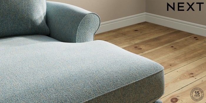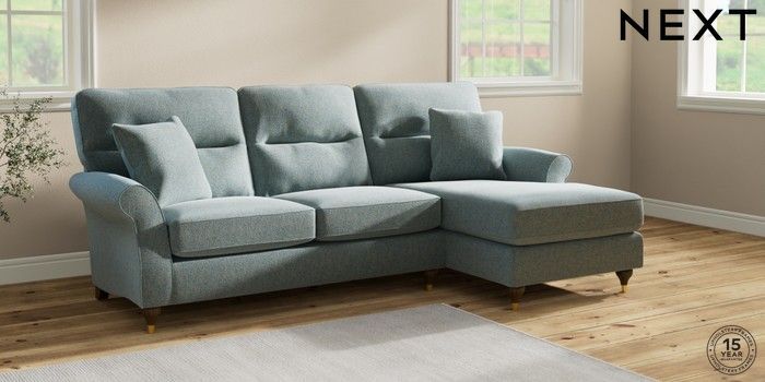 7.2.10 Ashford Highback Medium Sofa Chaise - Right Hand Chunky Marl Mid Blue Modern Turned Metal Cap - Mid | Made Click here to use our website with more accessibility support, for example screen readers