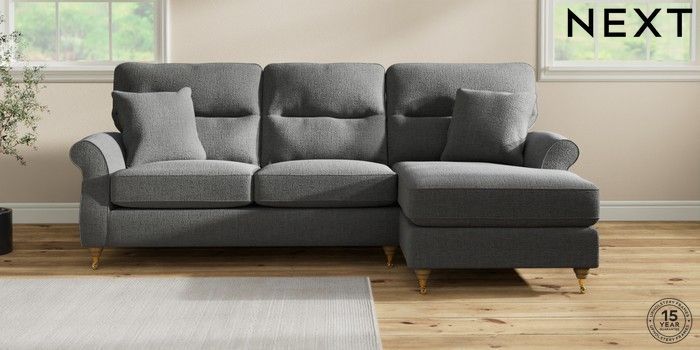 7.2.10 Ashford Highback Medium Sofa Chaise - Right Hand Chunky Texture Dark Grey Castor - Light | Made Click here to use our website with more accessibility support, for example screen readers