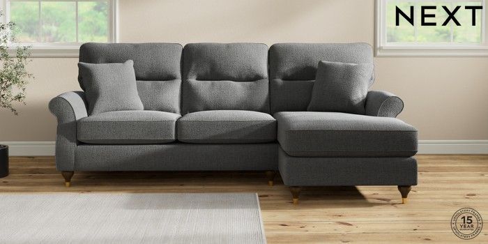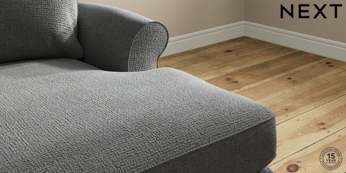 7.2.10 Ashford Highback Medium Sofa Chaise - Right Hand Chunky Texture Dark Grey Modern Turned Metal Cap - Mid | Made Click here to use our website with more accessibility support, for example screen readers