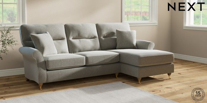 7.2.10 Ashford Highback Medium Sofa Chaise - Right Hand Chunky Texture Dove Castor - Light | Made Click here to use our website with more accessibility support, for example screen readers