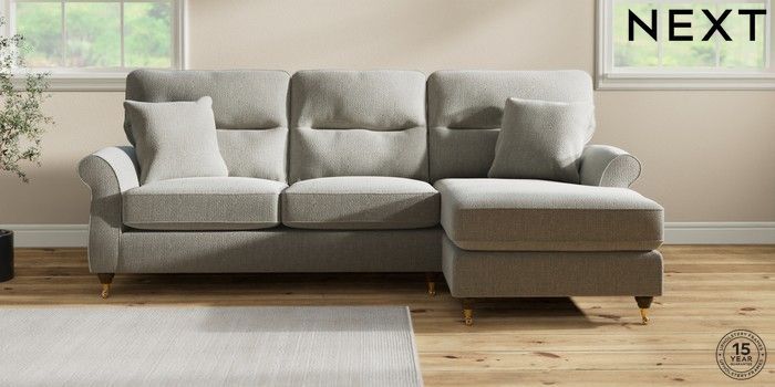 7.2.10 Ashford Highback Medium Sofa Chaise - Right Hand Chunky Texture Dove Castor - Mid | Made Click here to use our website with more accessibility support, for example screen readers