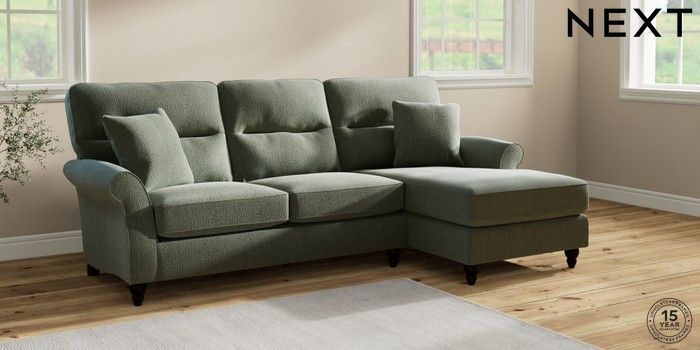 7.2.10 Ashford Highback Medium Sofa Chaise - Right Hand Chunky Texture Mid Forest Green Low Turned - Dark | Made Click here to use our website with more accessibility support, for example screen readers