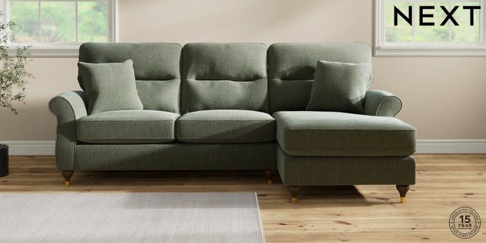7.2.10 Ashford Highback Medium Sofa Chaise - Right Hand Chunky Texture Mid Forest Green Modern Turned Metal Cap - Mid | Made Click here to use our website with more accessibility support, for example screen readers