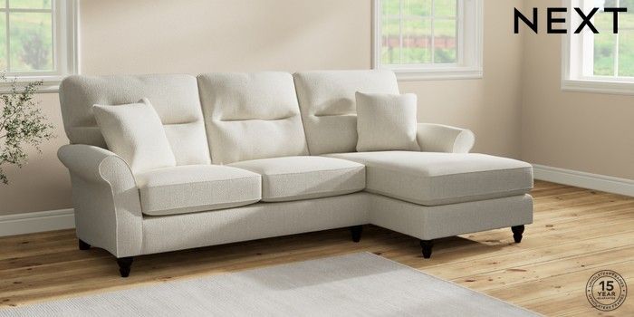 7.2.10 Ashford Highback Medium Sofa Chaise - Right Hand Chunky Texture Oyster Low Turned - Dark | Made Click here to use our website with more accessibility support, for example screen readers