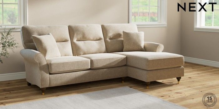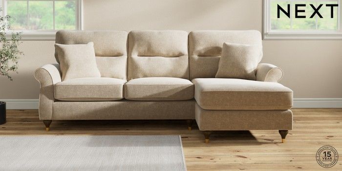 7.2.10 Ashford Highback Medium Sofa Chaise - Right Hand Chunky Weave Cream Modern Turned Metal Cap - Mid | Made Click here to use our website with more accessibility support, for example screen readers