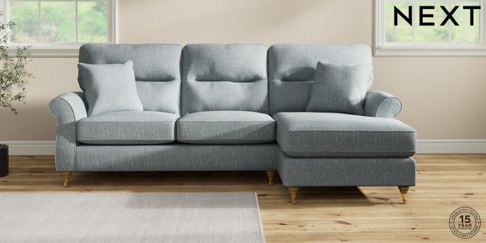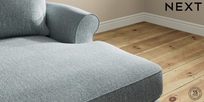 7.2.10 Ashford Highback Medium Sofa Chaise - Right Hand Chunky Weave Mid Blue Castor - Light | Made Click here to use our website with more accessibility support, for example screen readers