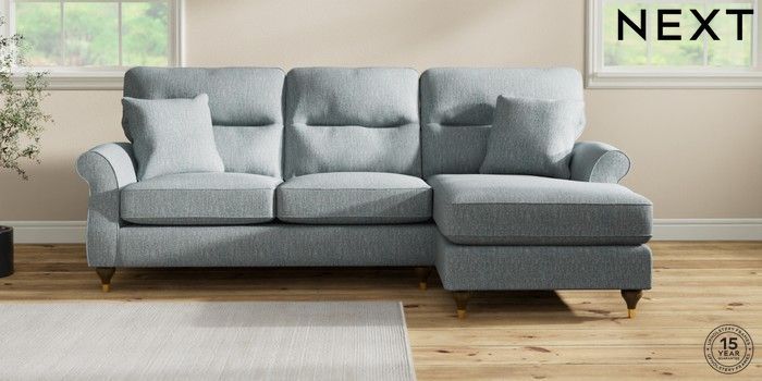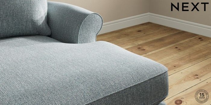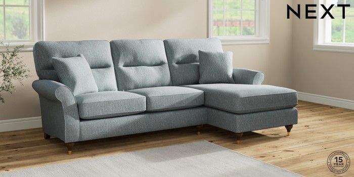 7.2.10 Ashford Highback Medium Sofa Chaise - Right Hand Chunky Weave Mid Blue Modern Turned Metal Cap - Mid | Made Click here to use our website with more accessibility support, for example screen readers