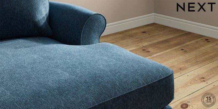 7.2.10 Ashford Highback Medium Sofa Chaise - Right Hand Cotswold Chenille Dark Blue Modern Turned Metal Cap - Mid | Made Click here to use our website with more accessibility support, for example screen readers