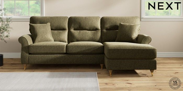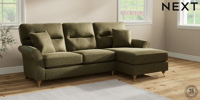 7.2.10 Ashford Highback Medium Sofa Chaise - Right Hand Cotswold Chenille Dark Green Castor - Light | Made Click here to use our website with more accessibility support, for example screen readers