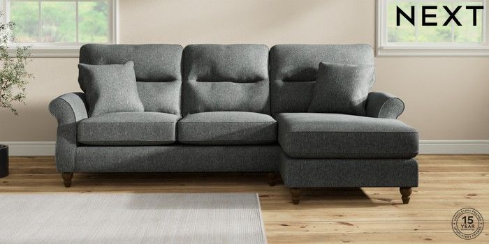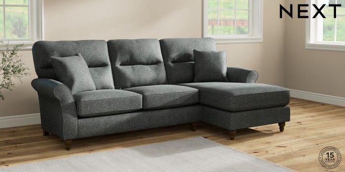 7.2.10 Ashford Highback Medium Sofa Chaise - Right Hand Cotswold Chenille Dark Grey Low Turned - Mid | Made Click here to use our website with more accessibility support, for example screen readers