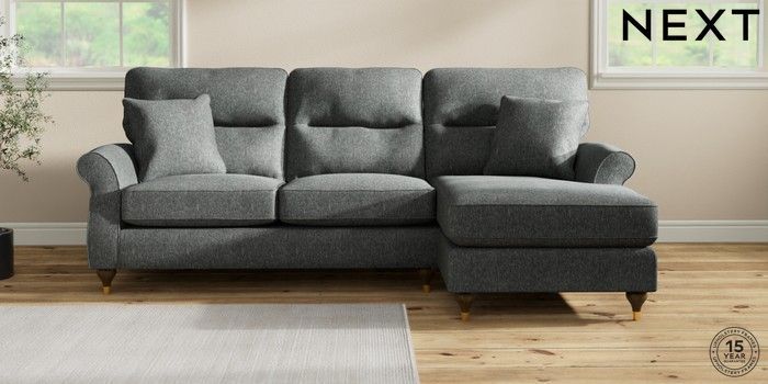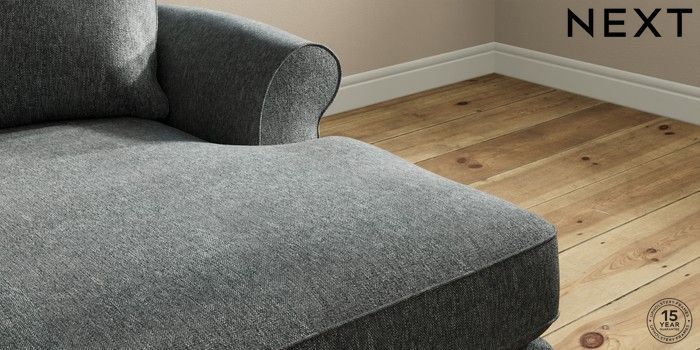 7.2.10 Ashford Highback Medium Sofa Chaise - Right Hand Cotswold Chenille Dark Grey Modern Turned Metal Cap - Mid | Made Click here to use our website with more accessibility support, for example screen readers