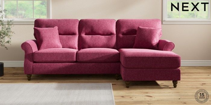 7.2.10 Ashford Highback Medium Sofa Chaise - Right Hand Cotswold Chenille Dark Raspberry Pink Low Turned - Mid | Made Click here to use our website with more accessibility support, for example screen readers