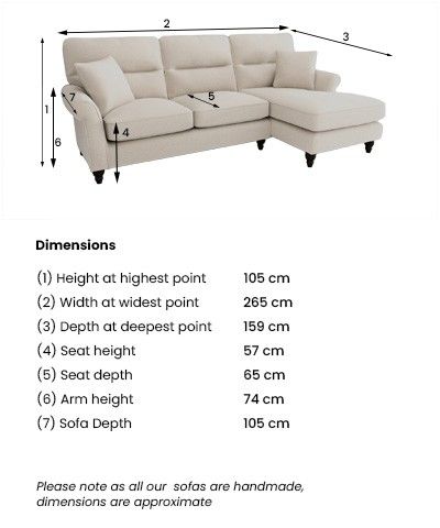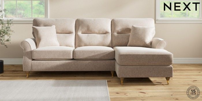 7.2.10 Ashford Highback Medium Sofa Chaise - Right Hand Cotswold Chenille Light Natural Castor - Light | Made Click here to use our website with more accessibility support, for example screen readers