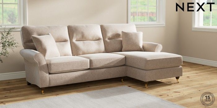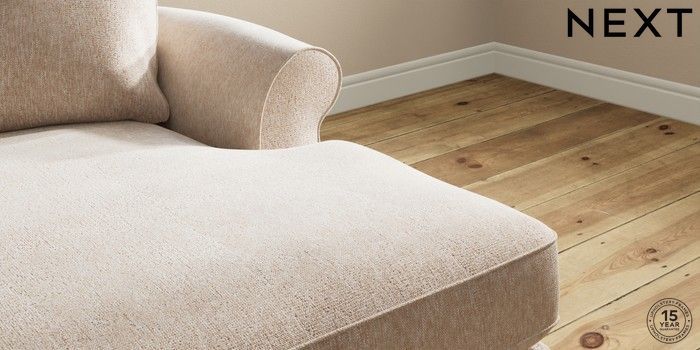 7.2.10 Ashford Highback Medium Sofa Chaise - Right Hand Cotswold Chenille Light Natural Castor - Mid | Made Click here to use our website with more accessibility support, for example screen readers
