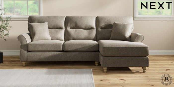 7.2.10 Ashford Highback Medium Sofa Chaise - Right Hand Cotswold Chenille Mid Mink Brown Low Turned - Light | Made Click here to use our website with more accessibility support, for example screen readers