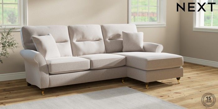 7.2.10 Ashford Highback Medium Sofa Chaise - Right Hand Cotswold Chenille Oyster Castor - Mid | Made Click here to use our website with more accessibility support, for example screen readers