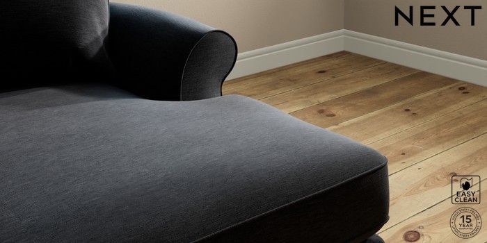 7.2.10 Ashford Highback Medium Sofa Chaise - Right Hand Fine Chenille Easy Clean Black Modern Turned Metal Cap - Mid | Made Click here to use our website with more accessibility support, for example screen readers