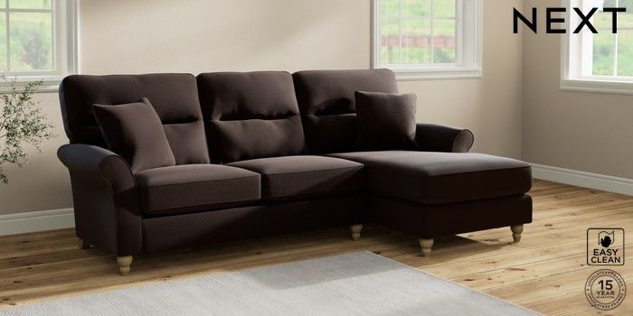7.2.10 Ashford Highback Medium Sofa Chaise - Right Hand Fine Chenille Easy Clean Chocolate Brown Low Turned - Light | Made Click here to use our website with more accessibility support, for example screen readers