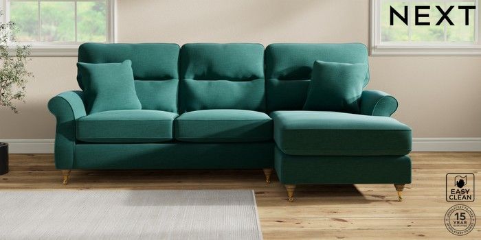 7.2.10 Ashford Highback Medium Sofa Chaise - Right Hand Fine Chenille Easy Clean Dark Juniper Green Castor - Light | Made Click here to use our website with more accessibility support, for example screen readers