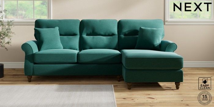 7.2.10 Ashford Highback Medium Sofa Chaise - Right Hand Fine Chenille Easy Clean Dark Juniper Green Low Turned - Mid | Made Click here to use our website with more accessibility support, for example screen readers