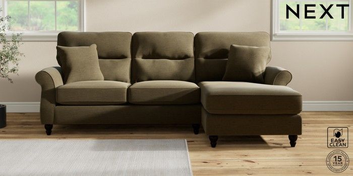 7.2.10 Ashford Highback Medium Sofa Chaise - Right Hand Fine Chenille Easy Clean Dark Moss Green Low Turned - Dark | Made Click here to use our website with more accessibility support, for example screen readers