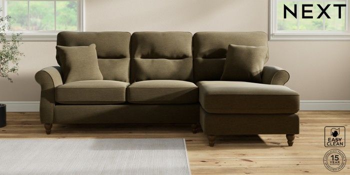7.2.10 Ashford Highback Medium Sofa Chaise - Right Hand Fine Chenille Easy Clean Dark Moss Green Low Turned - Mid | Made Click here to use our website with more accessibility support, for example screen readers