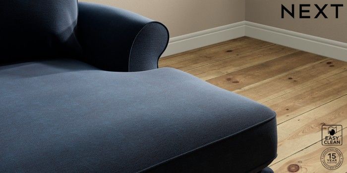7.2.10 Ashford Highback Medium Sofa Chaise - Right Hand Fine Chenille Easy Clean Dark Navy Blue Modern Turned Metal Cap - Mid | Made Click here to use our website with more accessibility support, for example screen readers