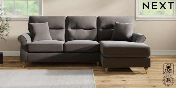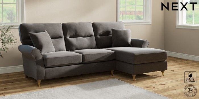 7.2.10 Ashford Highback Medium Sofa Chaise - Right Hand Fine Chenille Easy Clean Dark Smoke Grey Castor - Light | Made Click here to use our website with more accessibility support, for example screen readers