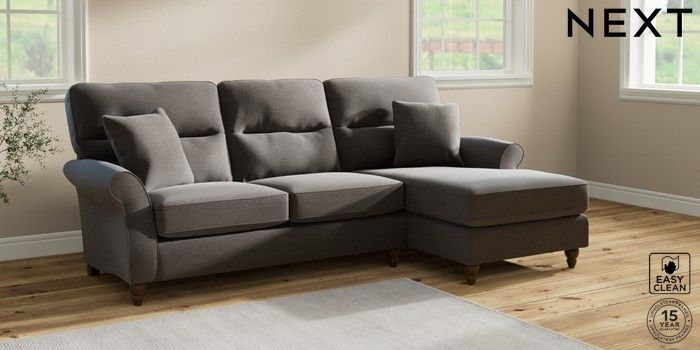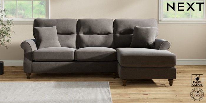 7.2.10 Ashford Highback Medium Sofa Chaise - Right Hand Fine Chenille Easy Clean Dark Smoke Grey Low Turned - Mid | Made Click here to use our website with more accessibility support, for example screen readers
