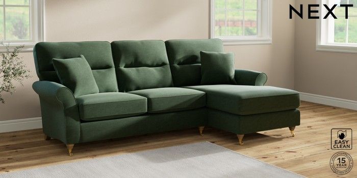 7.2.10 Ashford Highback Medium Sofa Chaise - Right Hand Fine Chenille Easy Clean Mid Khaki Green Castor - Light | Made Click here to use our website with more accessibility support, for example screen readers