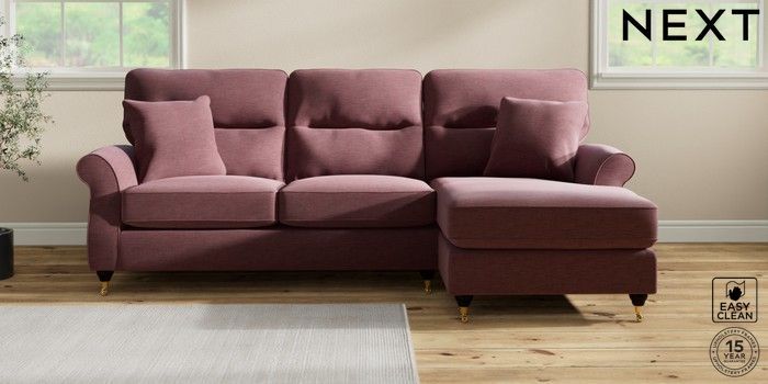 7.2.10 Ashford Highback Medium Sofa Chaise - Right Hand Fine Chenille Easy Clean Mid Mulberry Purple Castor - Dark | Made Click here to use our website with more accessibility support, for example screen readers