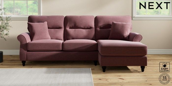 7.2.10 Ashford Highback Medium Sofa Chaise - Right Hand Fine Chenille Easy Clean Mid Mulberry Purple Low Turned - Dark | Made Click here to use our website with more accessibility support, for example screen readers