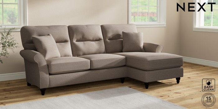 7.2.10 Ashford Highback Medium Sofa Chaise - Right Hand Fine Chenille Easy Clean Mid Taupe Brown Low Turned - Dark | Made Click here to use our website with more accessibility support, for example screen readers