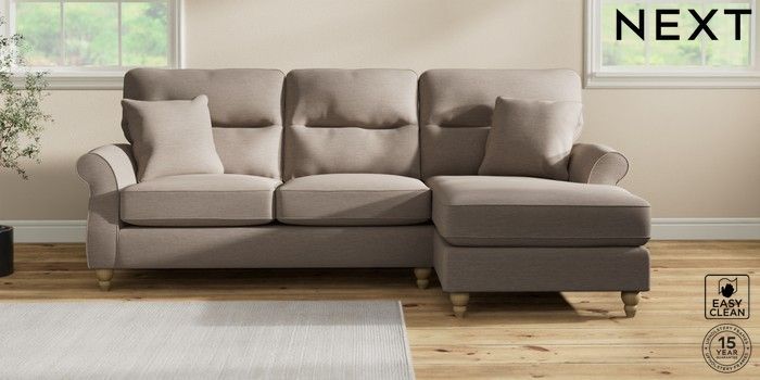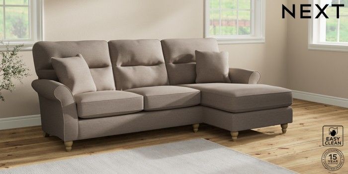 7.2.10 Ashford Highback Medium Sofa Chaise - Right Hand Fine Chenille Easy Clean Mid Taupe Brown Low Turned - Light | Made Click here to use our website with more accessibility support, for example screen readers