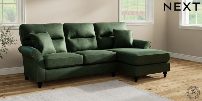 7.2.10 Ashford Highback Medium Sofa Chaise - Right Hand Luxe Chenille Dark Green Low Turned - Dark | Made Click here to use our website with more accessibility support, for example screen readers