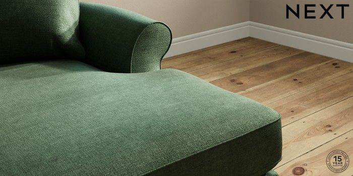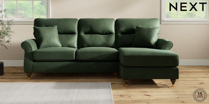 7.2.10 Ashford Highback Medium Sofa Chaise - Right Hand Luxe Chenille Dark Green Modern Turned Metal Cap - Mid | Made Click here to use our website with more accessibility support, for example screen readers
