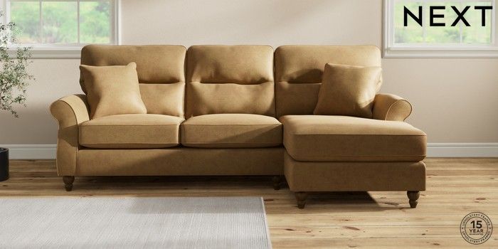 7.2.10 Ashford Highback Medium Sofa Chaise - Right Hand Luxe Chenille Honey Yellow Low Turned - Mid | Made Click here to use our website with more accessibility support, for example screen readers